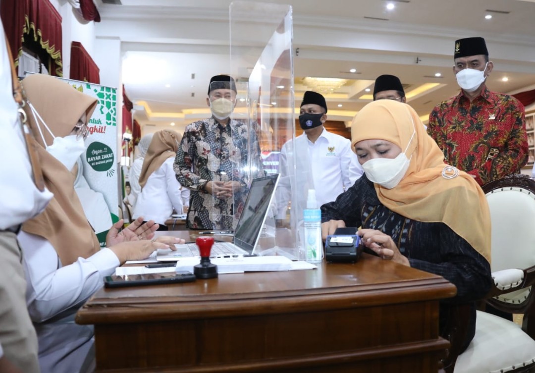 SURABAYATODAY.ID, SURABAYA – Gubernur Jawa Timur Khofifah Indar Parawansa secara resmi menyerahkan zakat melalui Badan Amil Zakat Nasional (Baznas) di Gedung Negara Grahadi Surabaya, Jumat (15/4) sore.