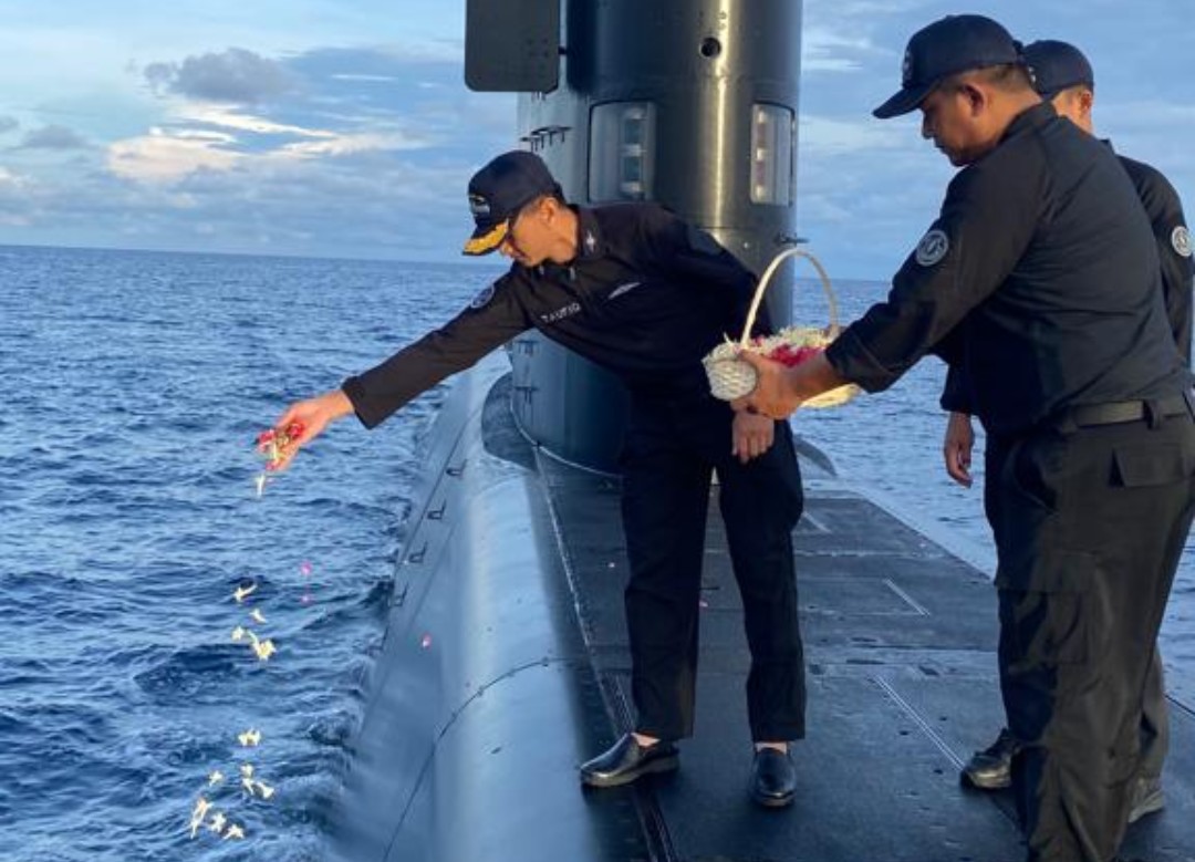 SURABAYATODAY.ID, BALI – Mengenang satu tahun terjadinya tragedi KRI Nanggala-402, prajurit KRI Alugoro-405 melaksanakan tabur bunga dan doa bersama bertempat di perairan Laut Bali. Tabur bunga dan doa bersama ini dipimpin langsung Komandan KRI Alugoro-405 Letkol Laut (P) Ahmad Nur Taufiq, Rabu (20/4).
