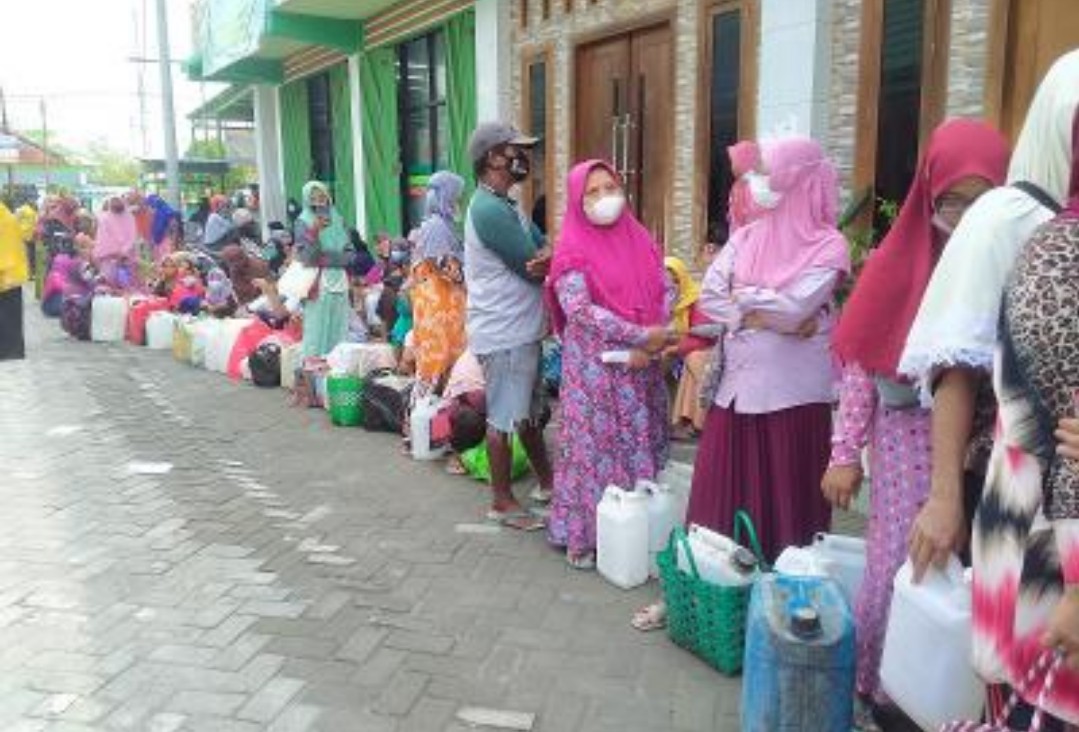 Sementara itu, Camat Sumberrejo, Gunardi, meninjau langsung lokasi pasar murah mandiri tersebut dan berbaur bersama ibu-ibu yang sedang mengantre minyak goreng curah.