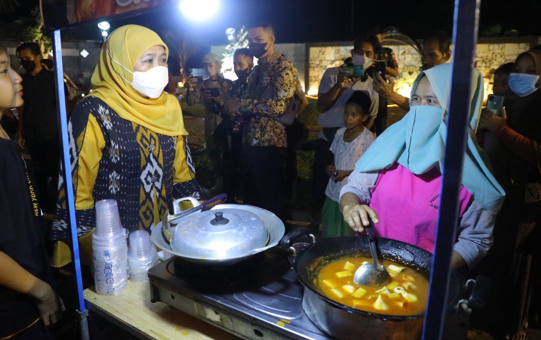 Di sana, Gubernur Khofifah melihat sekaligus berdialog langsung dengan penjual dan pembeli. Mereka sedang menikmati waktu sebelum Salat Tarawih.