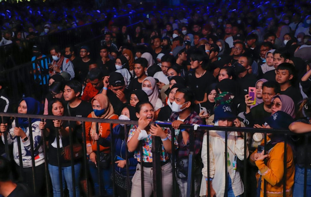 “Saya tadi menerjang hujan dan macet dengan motor untuk bisa sampai ke atas sini. Luar biasa antusiasme masyarakat Jatim untuk musik,” pujinya.