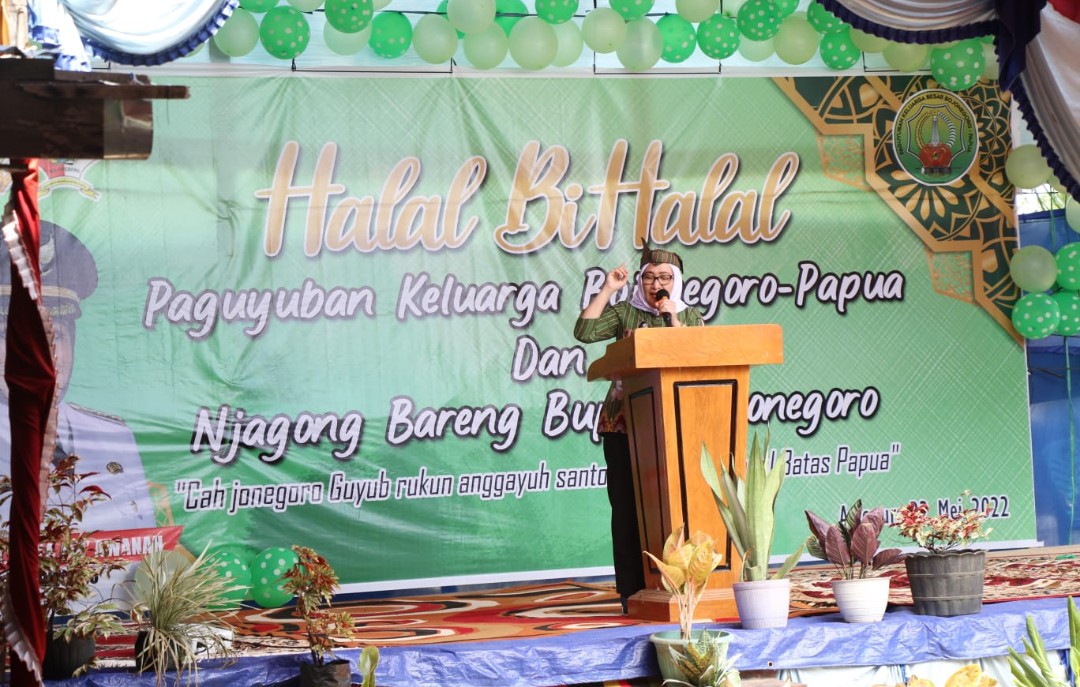 Bupati Bojonegoro Anna Mu'awanah saat menghadiri halal bihalal yang diselenggarakan Paguyuban Keluarga Bojonegoro-Papua di Kabupaten Keerom.