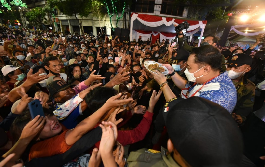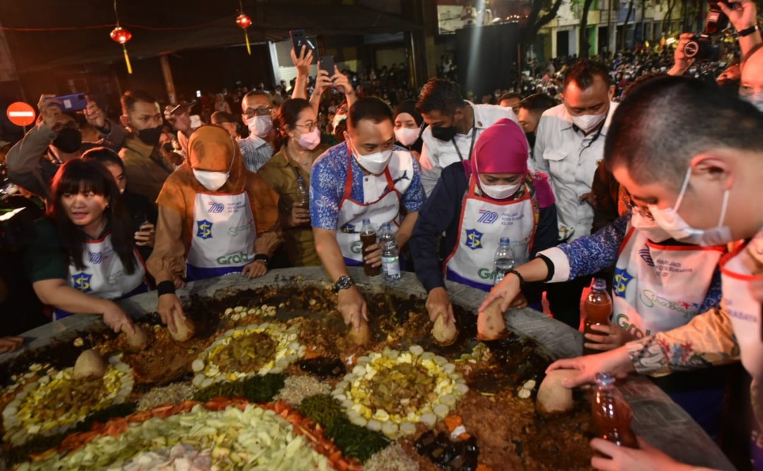 SURABAYATODAY.ID, SURABAYA – Setelah dua tahun tak digelar akibat pandemi, warga Kota Surabaya begitu antusias menyaksikan Festival Rujak Uleg Surabaya yang digelar di Jalan Kembang Jepun, Surabaya, Minggu (22/5) malam. Mereka tumplek blek di sepanjang jalan tersebut. Acara spektakuler itu juga dihadiri oleh Gubernur Jawa Timur Khofifah Indar Parawansa beserta Forkopimda Kota Surabaya.