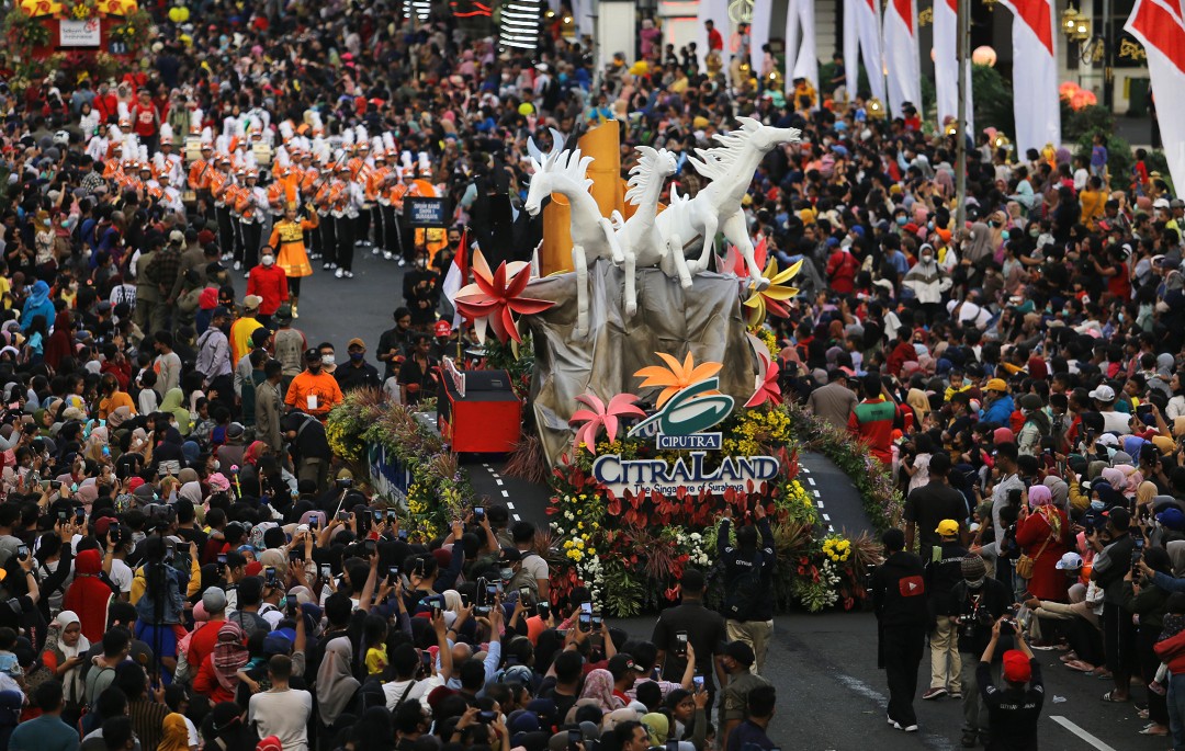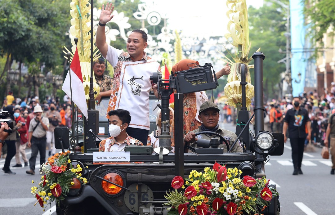 “Maka hari ini, kita mulai dengan Parade Bunga, kita bangun Surabaya dengan kekuatan kekeluargaan dan kegotong-royongan. Kita lewati pandemi Covid-19 ini, kita lewati susahnya perekonomian Surabaya menjadi kesejahteraan dan kebahagiaan bagi warga Surabaya,” kata dia.