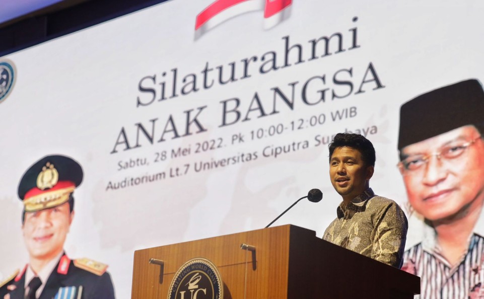 “Kita di sini untuk menyegarkan kembali semangat kebhinekaan kita yang luar biasa. Karena didirikannya Indonesia adalah semangat untuk memperjuangkan keperimanusiaan sesuai nilai-nilai Pancasila. Makanya kita kumpul dari berbagai elemen, lintas latar belakang, bahkan lintas agama untuk menghargai pluralisme dan multikulturalisme yang ada di Indonesia,” ujar Wakil Gubernur Jawa Timur Emil Elestianto Dardak saat menghadiri Silaturahmi Anak Bangsa dengan tema “Pancasila Sebagai Elan Atau Lambang Perjuangan Hidup Dalam Membentuk Tata Dunia yang Berperikemanusiaan Pasca Pandemi” di auditorium Universitas Ciputra, Surabaya, Sabtu (28/5).