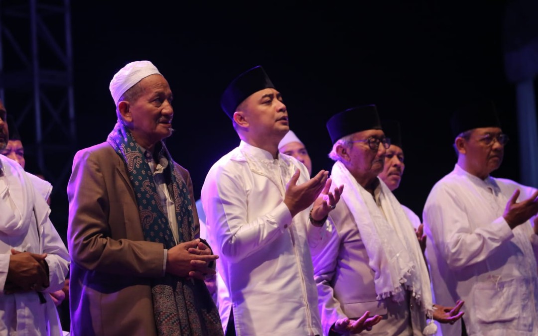 Wali Kota Surabaya Eri Cahyadi tampak berada di antara puluhan ulama, habib dan kai. Di antaranya, Habib Achmad Edrus Al Habsyi dari Pasuruan, KH Abdul Muhid Murtadho dan KH Agoes Ali Masyhuri (Gus Ali).