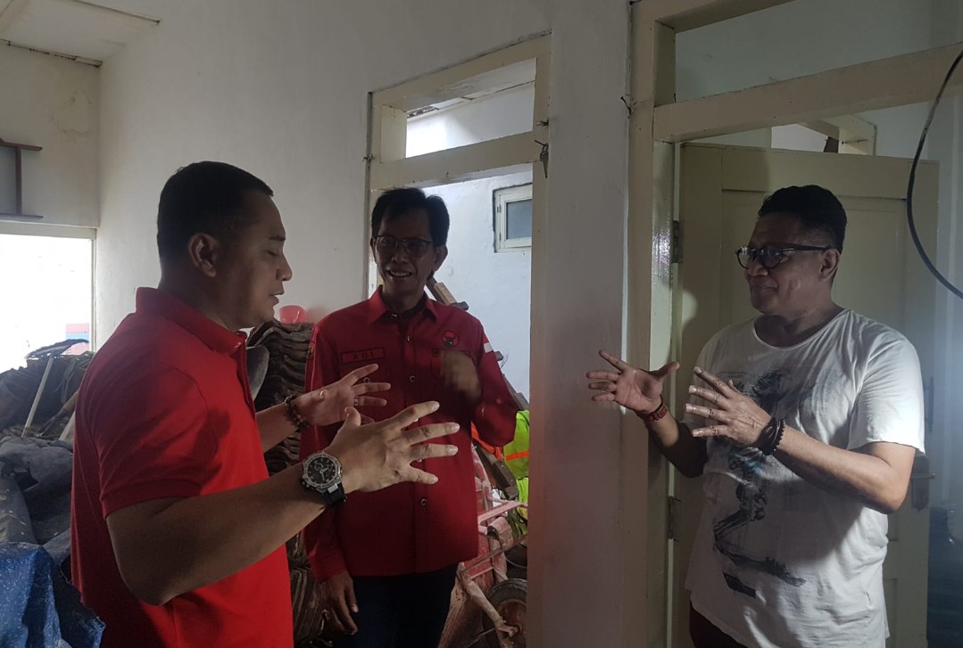 Ketua DPC PDIP Surabaya Adi Sutarwijono bersama pengurus dan kader DPC PDIP Surabaya, termasuk Wali Kota Surabaya Eri Cajyadi anjang sana di rumah kelahiran Bung Karno, Jalan Pandean gang IV Surabaya.