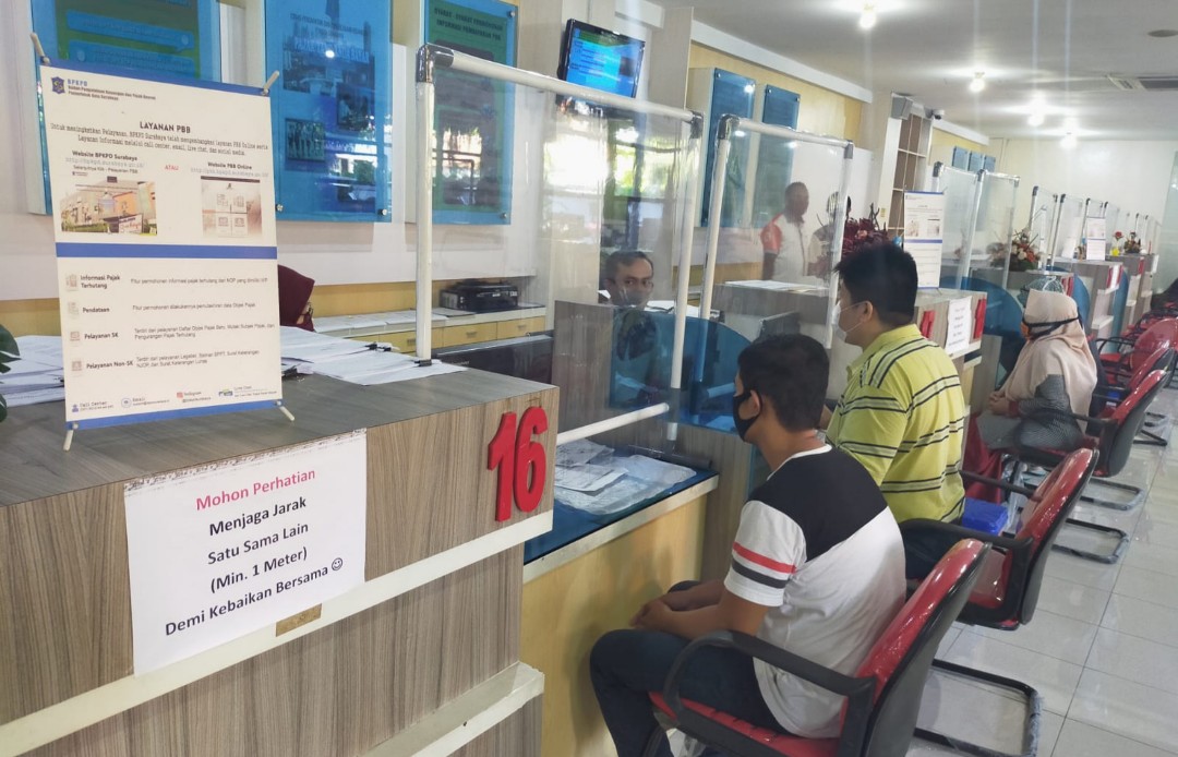 Suasana pelayanan pembayaran pajak di kantor pendapatan daerah Surabaya.