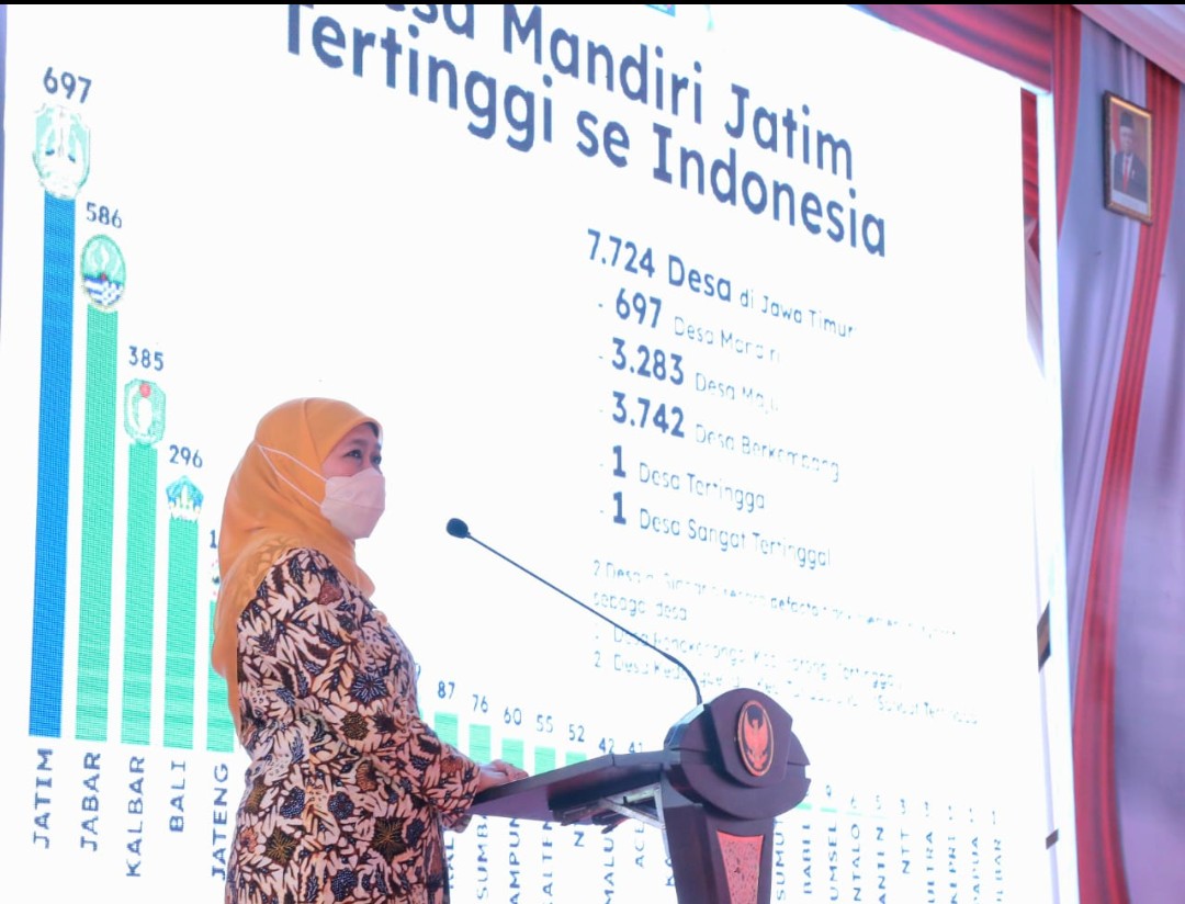 Dalam sambutannya, Gubernur Khofifah memberikan pernyataan tentang desa mandiri. Dikatakan, saat ini ada 7.724 desa di Jawa Timur.