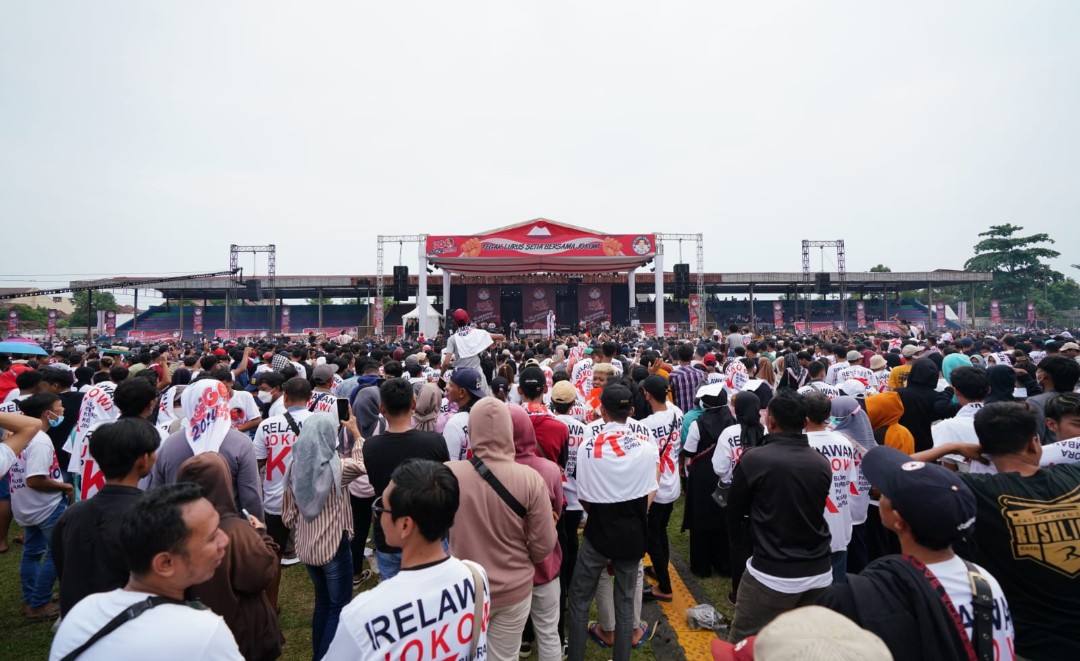 Para relawan Jokowi Plat K saat menggelar silaturahmi akbar 'Gagego' di Stadion Kamal Junaidi Jepara, Jawa Tengah.
