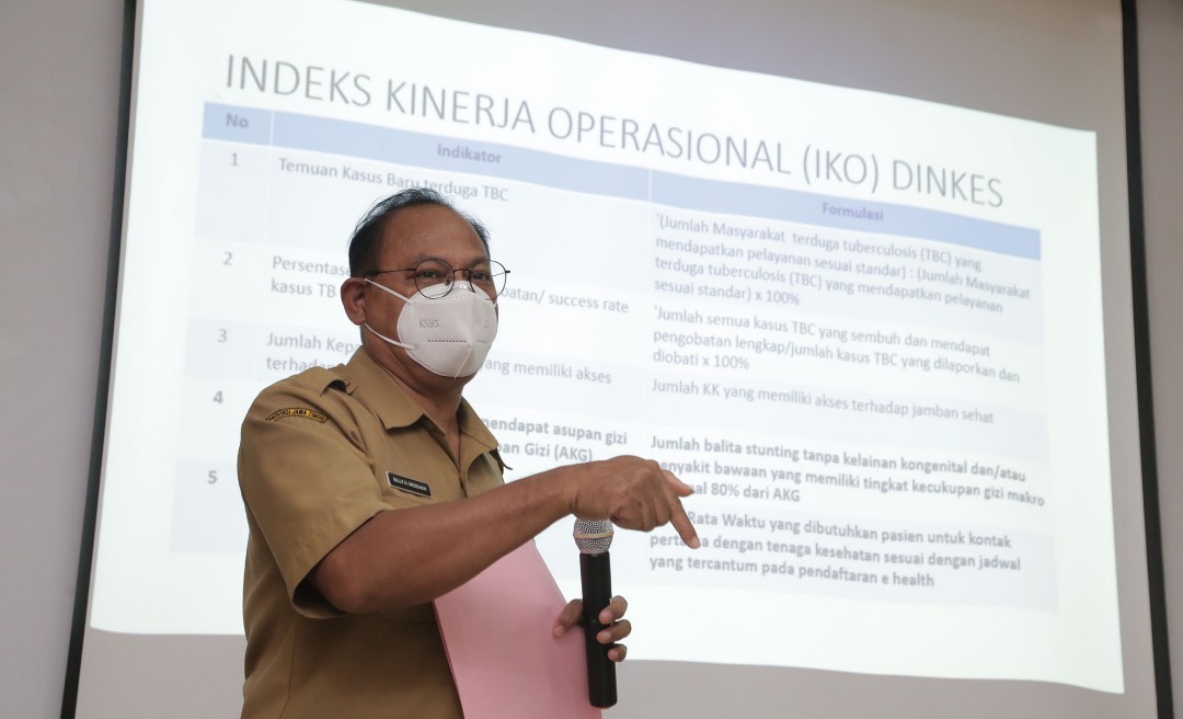 Selanjutnya adalah persentase keberhasilan pengobatan/succes rate kasus TBC dengan formulasi jumlah semua kasus TBC yang sembuh dan mendapat mendapatkan pengobatan lengkap, dibandingkan jumlah kasus TBC yang dilaporkan dan diobati. Dengan target 90 persen. Kemudian, jumlah kepala keluarga (KK) yang memiliki akses terhadap jamban sehat, dengan target 8.477 KK.