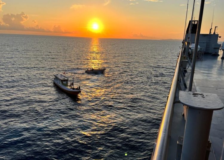 SURABAYATODAY.ID, SURABAYA – TNI AL KRI Surabaya (SBY)-591 Koarmada II dengan Komandan Letkol Laut (P) Handoyo pada saat menjalankan operasi pelayaran dari Pulau Sepekan menuju Pulau Sapudi, berhasil melaksanakan evakuasi kapal siaga desa di perairan sebelah barat Pulau Kangean, Senin (20/6). Lokasi persisnya tpada posisi 06 51 24 S – 115 04 30 T.