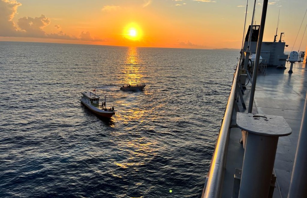 SURABAYATODAY.ID, SURABAYA – TNI AL KRI Surabaya (SBY)-591 Koarmada II dengan Komandan Letkol Laut (P) Handoyo pada saat menjalankan operasi pelayaran dari Pulau Sepekan menuju Pulau Sapudi, berhasil melaksanakan evakuasi kapal siaga desa di perairan sebelah barat Pulau Kangean, Senin (20/6). Lokasi persisnya tpada posisi 06 51 24 S – 115 04 30 T.