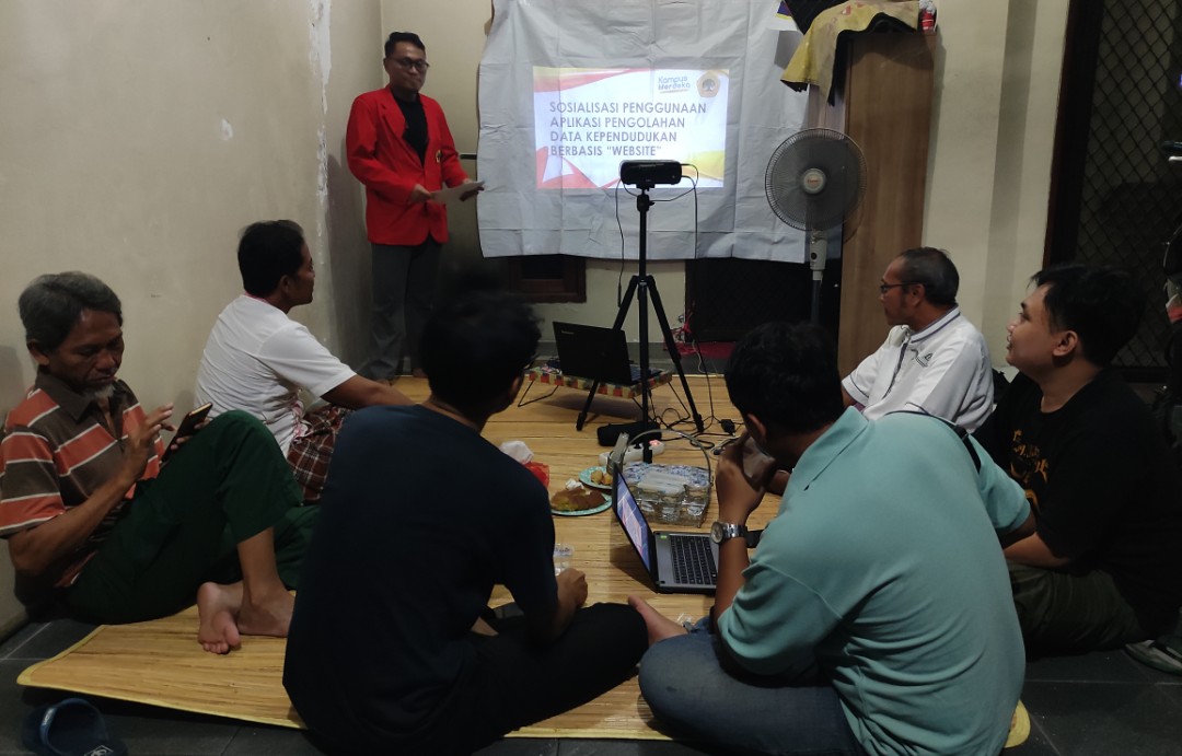 Mahasiswa Universitas 17 Agustus 1945 Surabaya, Nanda Oktaviyanto melakukan sosialisasi penggunaan aplikasi pengolahan data kependudukan di Perumahan Taman Pondok Legi I, Desa Pepelegi, Kecamatan Waru, Sidoarjo.