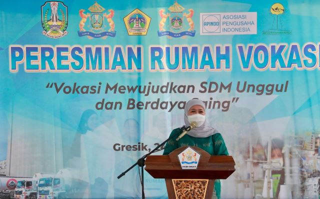 Hal tersebut dikemukakan Khofifah saat meresmikan Rumah Vokasi di Kabupaten Gresik, Jumat (24/6). Rumah Vokasi tersebut berdiri atas inisiasi Kadin Jatim dalam upaya penyediaan pendidikan dan pelatihan vokasi bagi pelajar SMK Jatim.