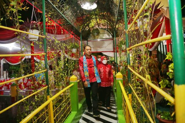 Wali Kota Surabaya Eri Cahyadi saat meresmikan Kampung Ceria dan Kampung Batik Tin Gundih.
