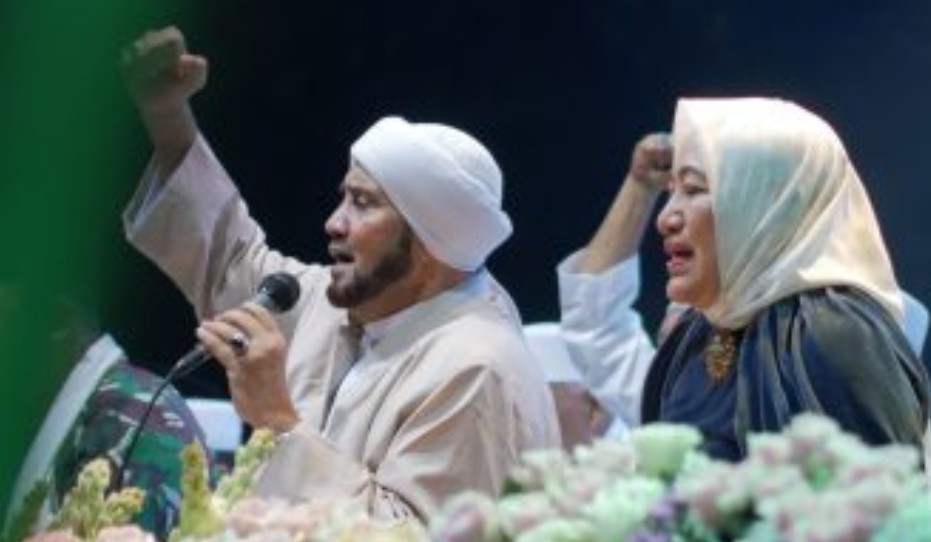 Selain itu, Habib Syech juga berterima kasih pada TNI-Polri sebab bekerja sama dalam menentramkan dan mengamankan negara. Terakhir, berdoa agar Indonesia bertambah maju, bangkit dan tambah semangat.