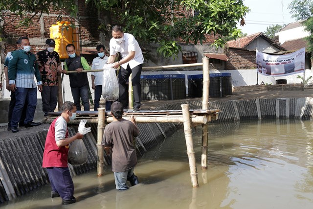 “Kehidupan kota itu lambat laun, akan hilang rasa gotong royongnya kalau tidak kita bangun bersama. Alhamdulillah matur nuwun (terima kasih) telah ditunjukkan gotong royong di Kecamatan Mulyorejo dengan membentuk produksi rumah batik dengan pengembangan ternak lele,” ujar dia.