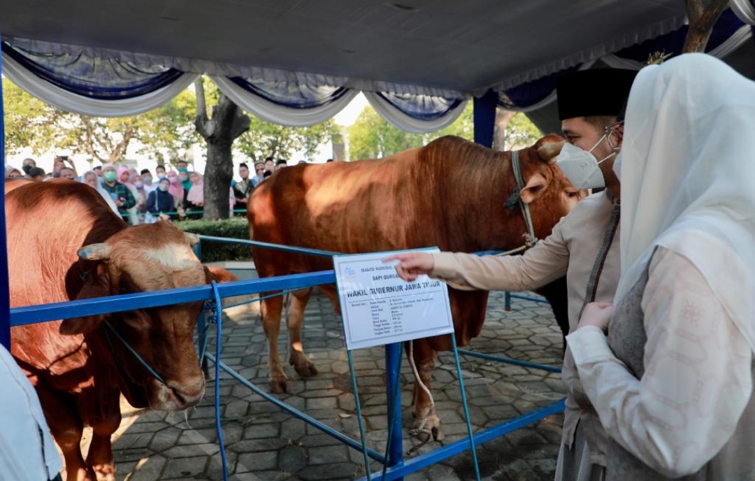 Sementara itu, sapi kurban dari Gubernur Jawa Timur Khofifah Indar Parawansa yakni jenis Simental berwarna merah dengan usia 5 tahun. Memiliki bobot 1.050 Kg, dengan tinggi gumba 160 cm, panjang badan 195 cm dan lingkar dada 231 cm yang berasal dari Desa Kanten, Kecamatan Trucuk, Kabupaten Bojonegoro.