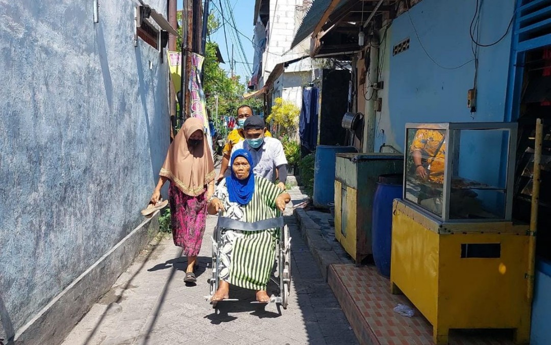 Tim dari Pemkot Surabaya menjemput nenek Kartiyem untuk dibawa ke UPTD Griya Werdha, Jambangan.