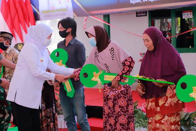 Hari ini, Kamis (4/8), Gubernur Khofifah bersama Pangdam V Brawijaya menyerahkan secara simbolis kunci rumah kepada 8 orang perwakilan warga yang rumahnya telah selesai direhabilitasi.