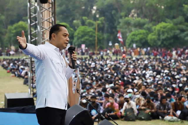 Wali Kota Surabaya Eri Cahyadi dalam kegiatan Pengenalan Kampus bagi Mahasiswa Baru (PPKMB) di Institut Teknologi Sepuluh Nopember (ITS) Surabaya Tahun Akademik 2022.