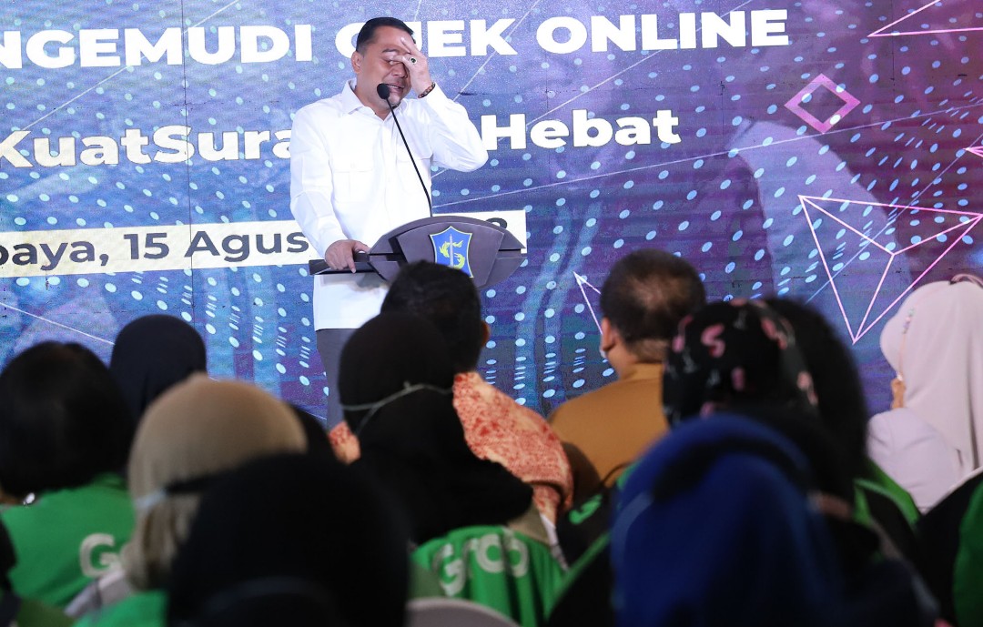 Wali Kota Surabaya Eri Cahyadi menangis saat mengumpulkan driver ojol perempuan untuk memberikan bantuan.