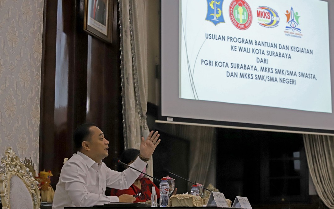 Eri menjelaskan bahwa pertemuan kali ini untuk menindaklanjuti pertemuannya dengan Gubernur Jawa Timur yang mana Pemkot Surabaya ingin memberikan bantuan biaya pendidikan kepada pelajar SMA Sederajat yang MBR dan berasal dari Surabaya atau KTP Surabaya. Sebab, sampai saat ini masih ada siswa SMA yang belum bisa membayar SPP-nya, meskipun sudah ada dana BOS (Bantuan Operasional Sekolah) dan juga Bopda (Bantuan Operasional Pendidikan Daerah) yang dicover oleh Pemprov Jatim.