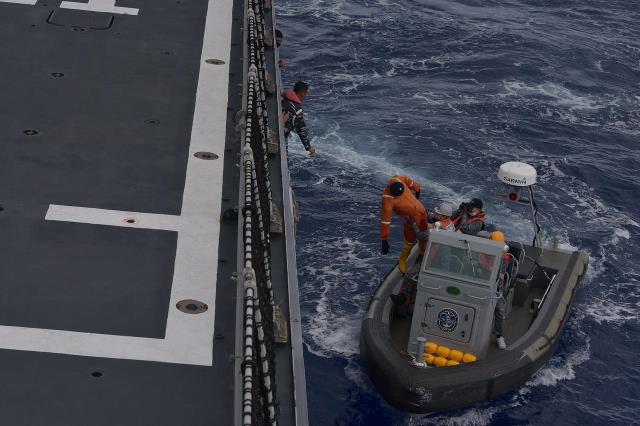 Setelah berhasil menyelamatkan personel yang jatuh tersebut, regu penyelamat mengantarkan kembali ke KRI I Gusti Ngurah Rai-332.