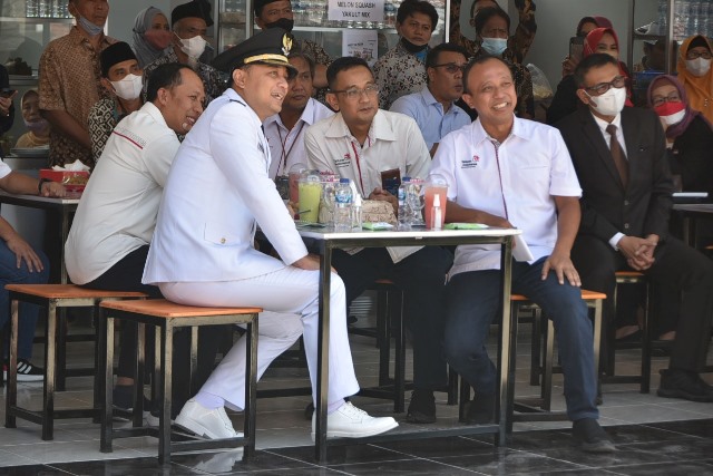 SURABAYATODAY.ID, SURABAYA – Wali Kota Surabaya Eri Cahyadi menghadiri soft launching Sentra Digital Kuliner (SDK) Telkom Ketintang, di depan halaman Kampus Institut Teknologi Telkom Surabaya (ITTS) Jalan Ketintang No 156, Rabu (17/8). Eri hadir masih menggunakan pakaian dinas upacara, setelah mengikuti serangkaian perayaan HUT RI ke-77 RI di Balai Kota.