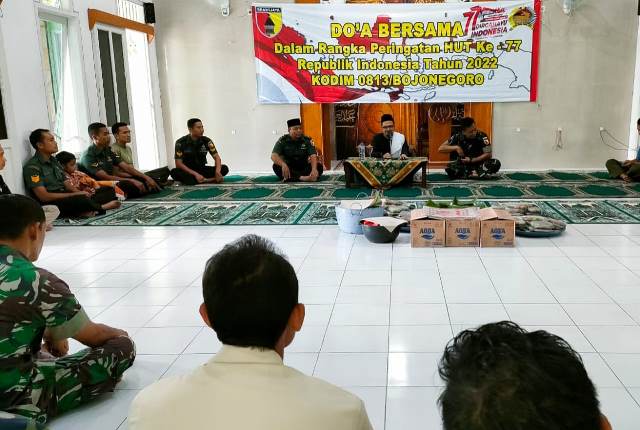SURABAYATODAY.ID, BOJONEGORO – Memperingati HUT Kemerdekaan Republik Indonesia ke-77, Kodim 0813 Bojonegoro menggelar doa bersama. Kegiatan ini dilaksanakan di Masjid Al Askhar Komplek Makodim 0813 Bojonegoro, Kamis (18/8).