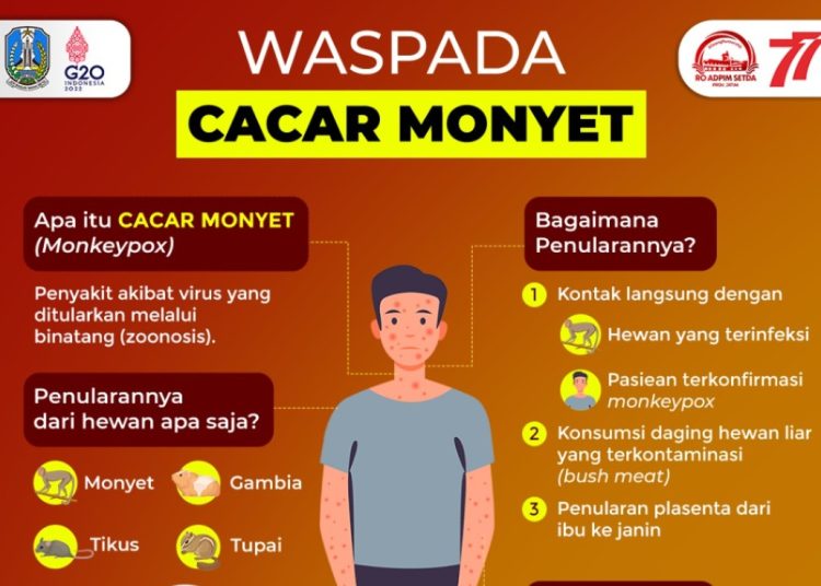 SURABAYATODAY.ID, SURABAYA –  Kementerian Kesehatan RI mengonfirmasi kasus pertama Monkeypox atau cacar monyet masuk di Indonesia. Kasus tersebut ditemukan pada pasien laki-laki berusia 27 tahun pada Jumat (19/8) usai melakukan perjalanan ke Belanda, Swiss, Belgia dan Perancis.