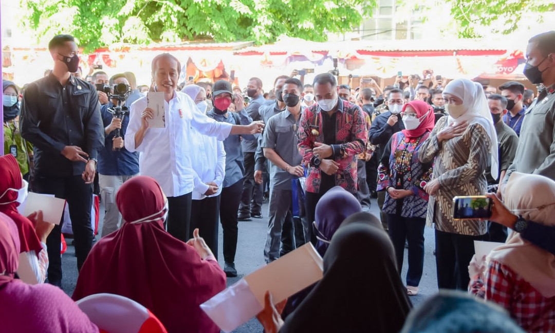 Juga turut mendampingi Presiden Jokowi menyerahkan bantuan modal kerja (BMK) dan BLT minyak goreng yang diberikan kepada 100 pedagang dan menyerahkan 100 orang peserta Program Keluarga Harapan (PKH) di sekitar wilayah Pasar Pucang Anom.