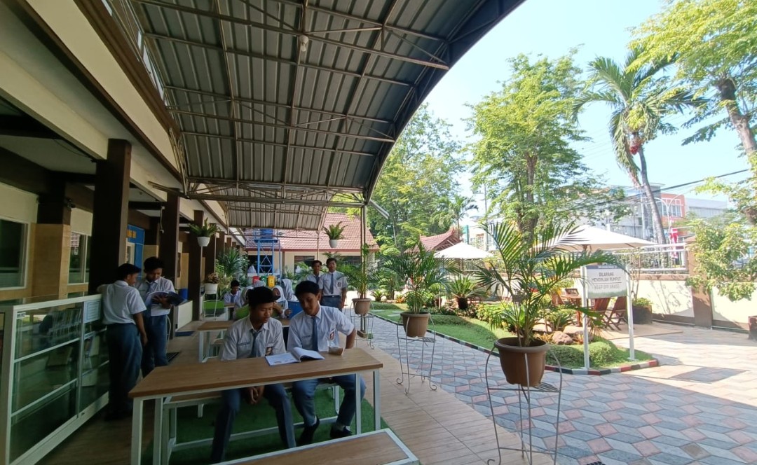 Sejak Pembelajaran Tatap Muka (PTM) dimulai pada tahun ajaran baru 2022-2023 pada Juli lalu, SMA Antartika Sidoarjo menyambut siswa dengan adanya taman literasi ini.