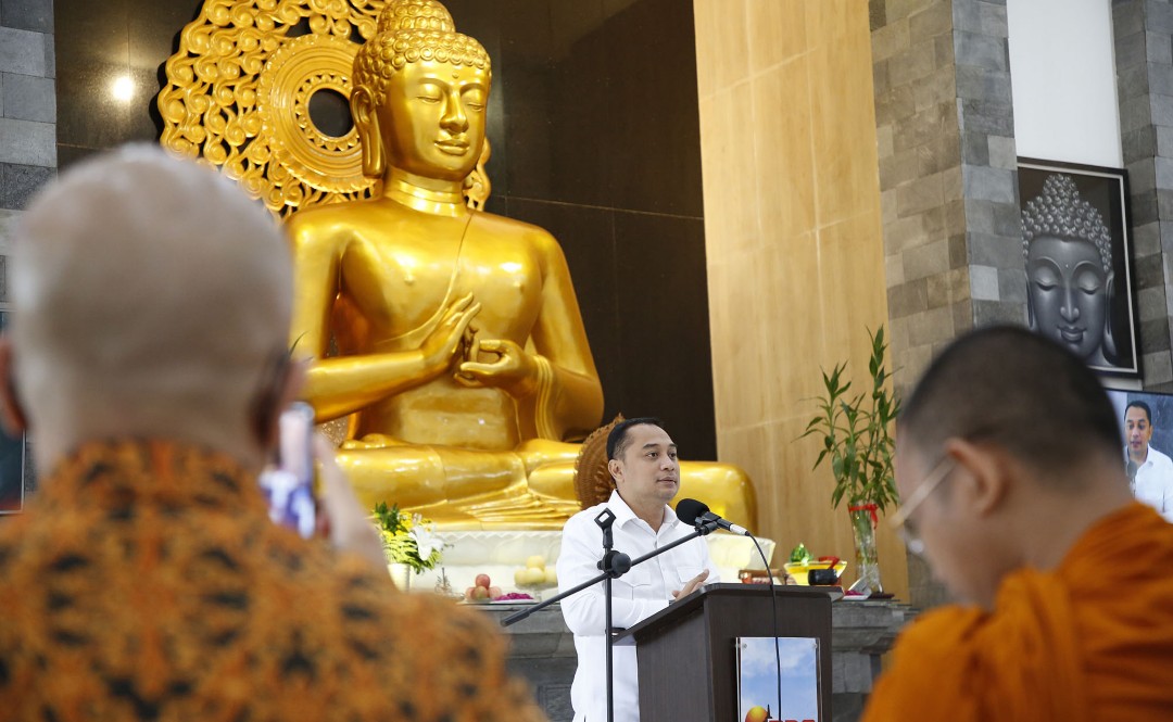Karena, ia meminta kepada para Bhante untuk mendoakan Kota Surabaya agar tetap menjadi kota yang nyaman, aman, dan tenang bagi seluruh umat beragama. “Semoga Surabaya menjadi kota yang penuh berkah dengan doanya para Bhante dan Panjenengan (Anda) semuanya. Matur nuwun (terima kasih) atas semua dukungannya untuk Pemkot Surabaya,” ujarnya.