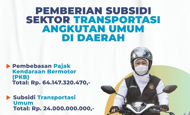 Di sisi lain, khusus untuk sektor transportasi akan diberikan subsidi transportasi berupa subsidi angkutan kapal perintis dengan total subsidi sebesar Rp 15 miliar. Selain itu juga akan diberikan subsidi penumpang bus Trans Jatim senilai Rp 9 miliar.
