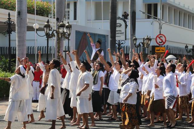 Dalam momen ini, Wali Kota Surabaya Eri Cahyadi memimpin pertunjukan yang dipusatkan di depan Hotel Majapahit. Eri juga memimpin penghormatan kepada bendera merah-putih saat menyanyikan lagu kebangsaan Indonesia Raya.
