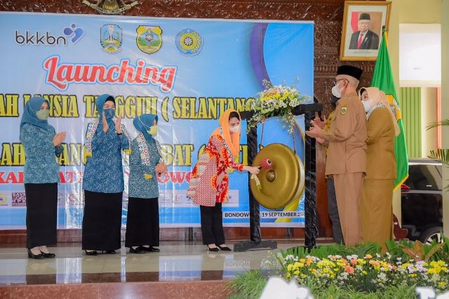 SURABAYATODAY.ID, BONDOWOSO – Ketua TP PKK Jatim Arumi Bachsin memberi apresiasi atas diluncurkannya Sekolah Lansia Tangguh (Selantang) dan Sekolah Orang Tua Hebat (SOTH) di Pendopo Kabupaten Bondowoso, Senin (19/9). Arumi mengatakan, keberadaan Selantang maupun SOTH ini merupakan implementasi dari terwujudnya wanita-wanita tangguh di Jawa Timur. Kegiatan ini diyakini dapat mewujudkan peningkatan kualitas hidup lebih baik di Bondowoso.