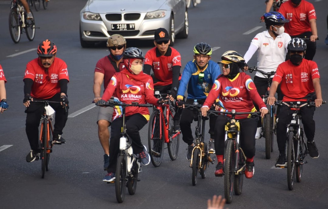 SURABAYATODAY.ID, SURABAYA – Dalam rangka memperingati Hari Jantung Sedunia 2022 di Jawa Timur, pata dokter jantung nggowes bareng. Kegiatan yang dinamai Indonesia Heart Bike (IHB) 2022 itu dilaksanakan juga dalam rangka Hari Ulang Tahun Ke-50 (Emas) Ikatan Alumni (IKA) Unair.