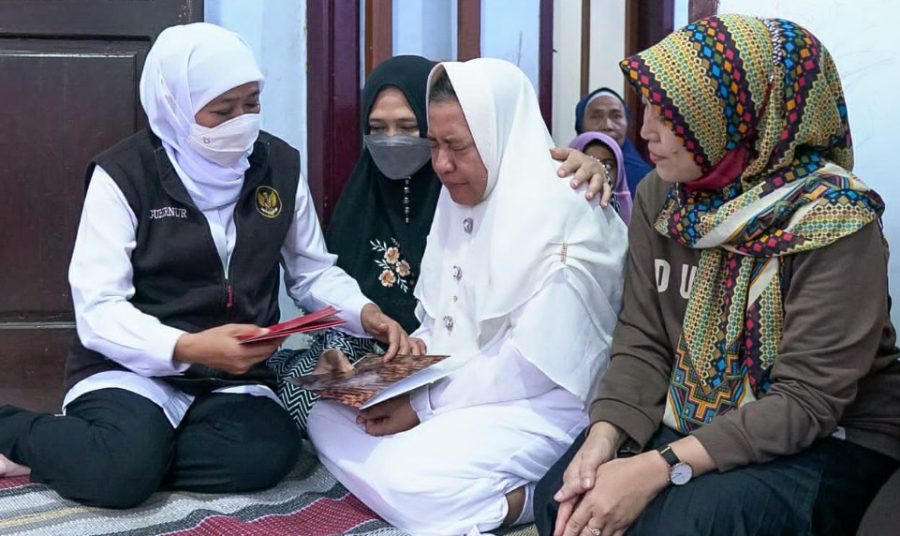SURARABAYATODAY.ID, MALANG – Gubernur Jatim Khofifah Indar Parawansa melakukan taziah ke dua rumah korban meninggal yang merupakan pasangan suami istri asal Kelurahan Bareng, Malang dan seorang mahasiswa. Tak hanya takziah, Gubernur Khofifah menyerahkan santunan kepada kedua keluarga ahli waris korban.