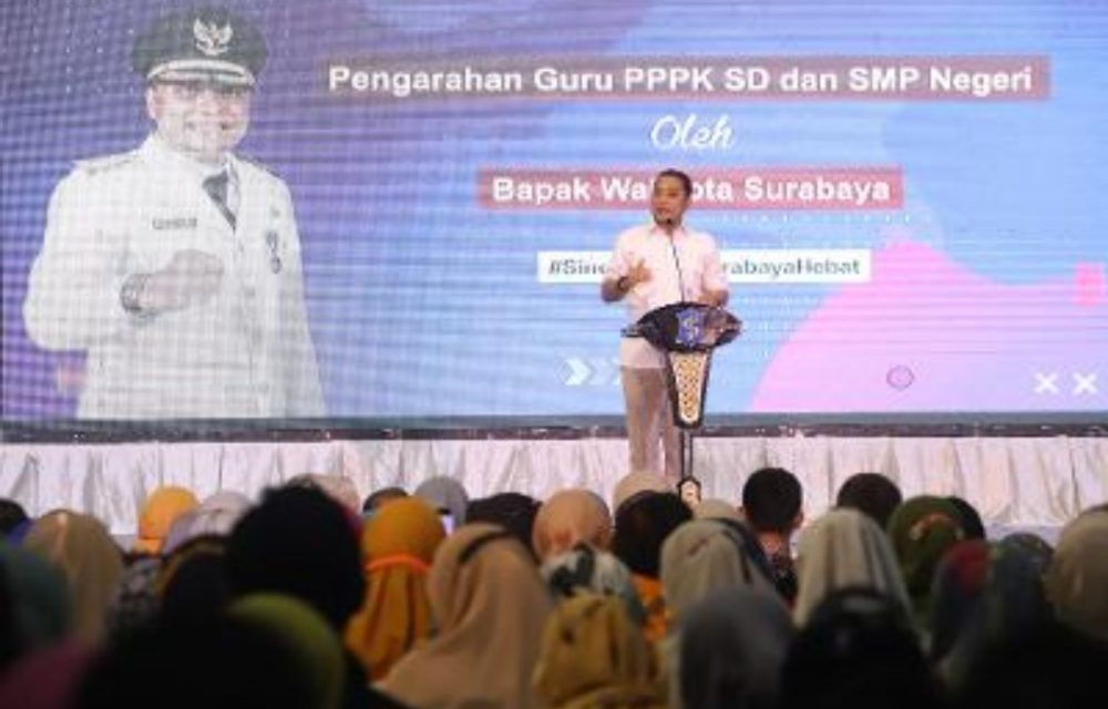 SURABAYATODAY.ID, SURABAYA – Wali Kota Surabaya Eri Cahyadi memberikan motivasi kepada 883 guru Pegawai Pemerintah dengan Perjanjian Kerja (PPPK) SD dan SMP negeri di gedung Convention Hall Kota Surabaya, Selasa (4/10). Ia meminta guru untuk membentuk karakter siswa melalui pembenahan pola pembelajaran.