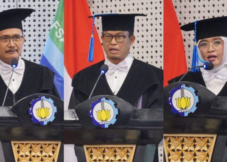 SURABAYATODAY.ID, SURABAYA – Jumlah profesor atau guru besar di Institut Teknologi Sepuluh Nopember (ITS) kini telah mencapai 151 orang, yang ditandai dengan dikukuhkannya tiga profesor baru lagi dari berbagai bidang keilmuan. Acara ini dilaksanakan secara luring di Auditorium Gedung Pusat Riset ITS dan disiarkan secara langsung melalui kanal Youtube resmi ITS, Rabu (12/10).