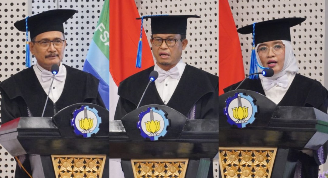 SURABAYATODAY.ID, SURABAYA – Jumlah profesor atau guru besar di Institut Teknologi Sepuluh Nopember (ITS) kini telah mencapai 151 orang, yang ditandai dengan dikukuhkannya tiga profesor baru lagi dari berbagai bidang keilmuan. Acara ini dilaksanakan secara luring di Auditorium Gedung Pusat Riset ITS dan disiarkan secara langsung melalui kanal Youtube resmi ITS, Rabu (12/10).