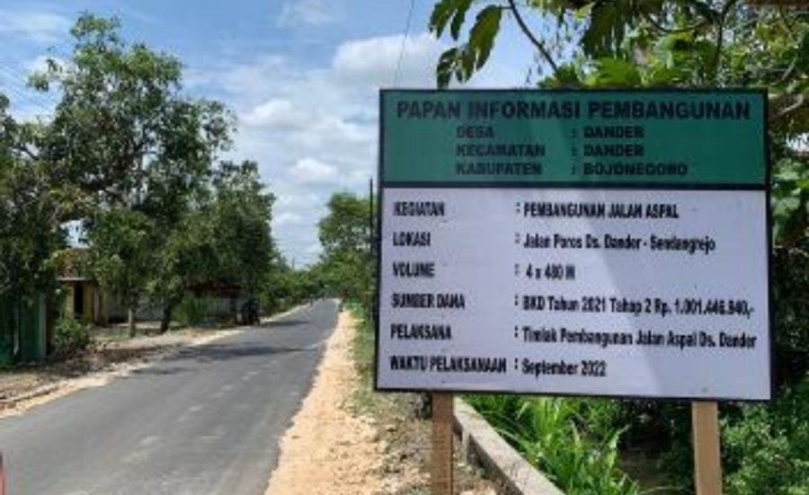 Jalan di Desa Dander, Kecamatan Dander yang telah dibangun melalui program Bantuan Keuangan Desa (BKD) dari Pemkab Bojonegoro.