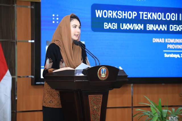 SURABAYATODAY.ID, SURABAYA – Ketua Dekranasda Provinsi Jawa Timur Arumi Bachsin membuka Workshop Teknologi Informasi dan Komunikasi (TIK) Bagi Pelaku UKM/IKM Binaaan Dekranasda Provinsi Jawa Timur, Senin (17/10). Workshop digelar di Dinas Komunikasi dan Informatika Provinsi Jatim, Jalan A. Yani Surabaya.