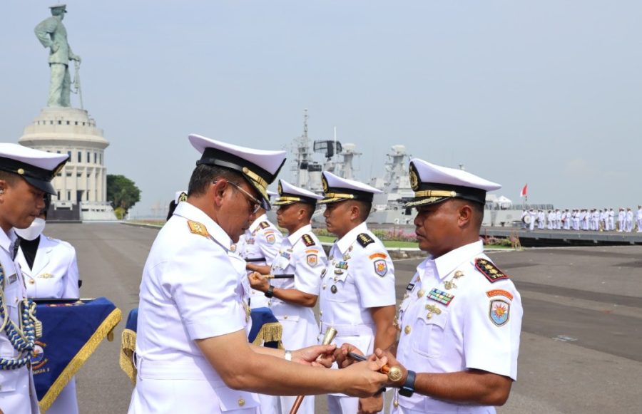 SURABAYATODAY.ID, SURABAYA – Panglima Komando Armada (Pangkoarmada) II Laksda TNI Dr. T.S.N.B. Hutabarat, M.M.S., memimpin acara serah terima lima jabatan strategis yang ada di jajaran Koarmada II, Senin (17/10). Serahbterima bertempat di Lounge Majapahit dan Dermaga Ujung Koarmada II Surabaya.