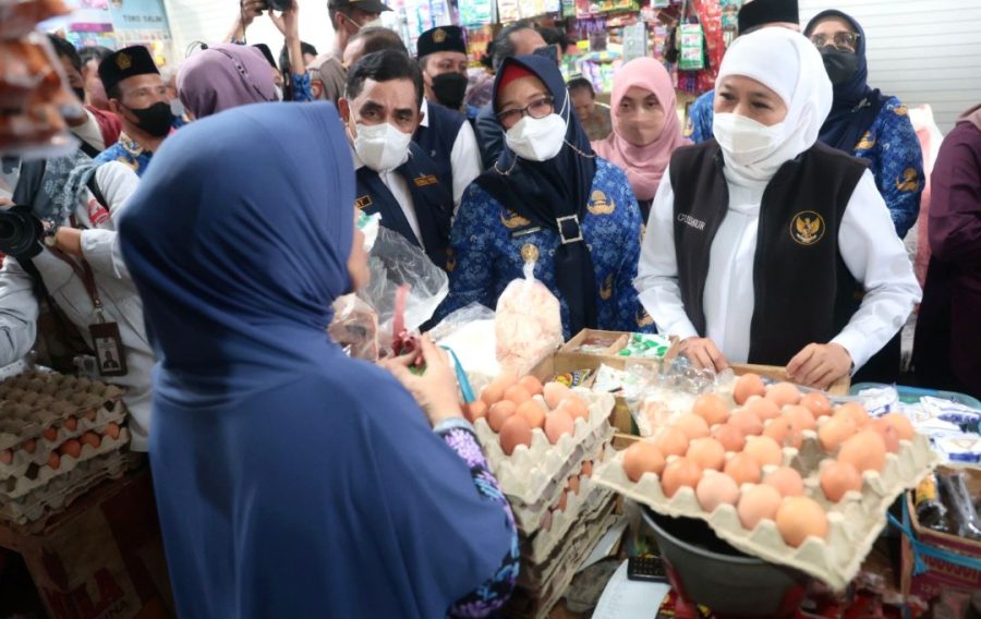 “Yang kita lihat pergerakan harga di pasar ini pertama adalah kenaikan harga telur ayam di atas HET, dan yang kedua adalah kenaikan beras,” tegas Gubernur Khofifah.