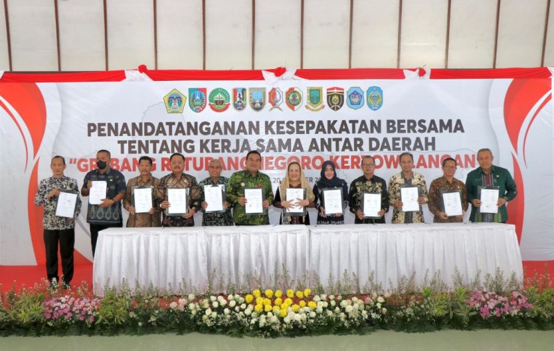 Di akhir acara, seluruh bupati dan wali kota yang tergabung dalam kerja sama tersebut melalukan penandatanganan naskah kerjasama daerah yang diberi nama “Grebang Ratubangnegoro Kertowilangan”. (ST10)