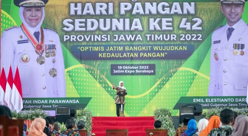 “Insya Allah Jawa Timur tetap bisa menjadi lumbung pangan nasional. Terlebih, Data BPS terus terupdate dan koordinasi dengan kepala daerah juga terus kita lakukan,” tegas Gubernur Khofifah dalam puncak Peringatan Hari Pangan Sedunia ke-42 Tahun 2022 Provinsi Jawa Timur, di Jatim Expo, Surabaya, Rabu (19/10).