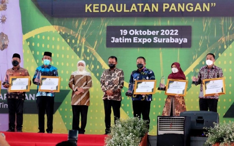 Penghargaan tersebut, diberikan Gubernur Jawa Timur (Jatim) Khofifah Indar Parawansa kepada Wali Kota Surabaya Eri Cahyadi sebagai salah satu kepala daerah di Jatim yang berdedikasi, berinovasi dan peduli terhadap ketahanan pangan.